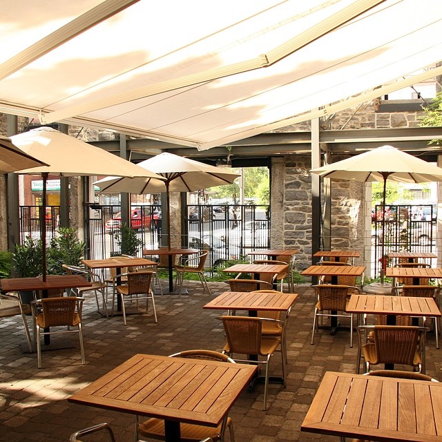 These days, Griffintown is the hottest neighbourhood in Montreal and Grinder is definitely part of the reason. Now that they have a terrace with a retractable roof to contend with the elements, Grinder has become all the more appealing. With a killer raw menu and great cocktails, the vibe inside the restaurant carries through the open garage door windows to the terrace that spans the side of the restaurant. Sit on their leather banquets under their inverted parasols and enjoy the perfect weather.