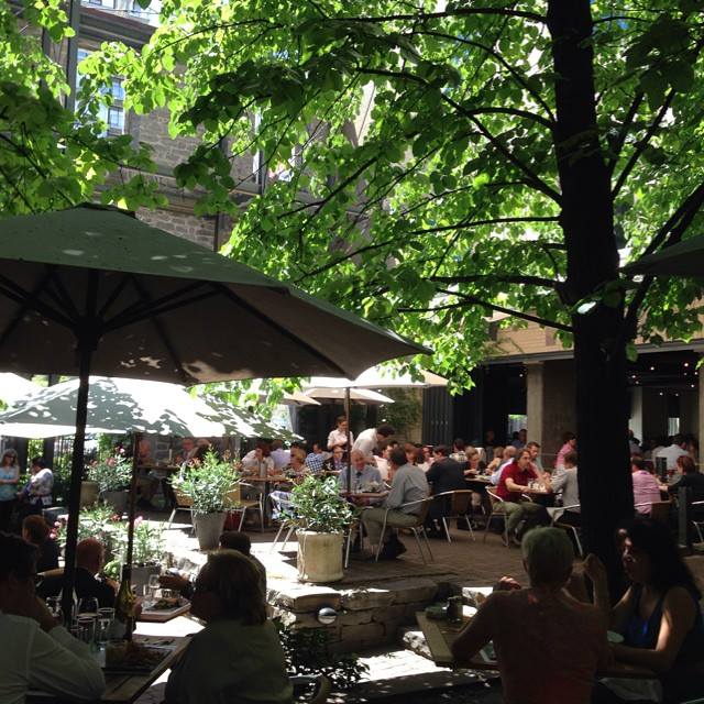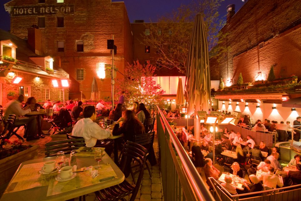 Another courtyard terrace located in the heart of Old Montreal in the Place Jacques Cartier area is Jardin Nelson. It is a Montreal staple, and every tourist should make a point of visiting this garden. The front terrace is beautiful but the desirable courtyard is worth the wait to relax, have a delicious meal, and listen to live jazz.