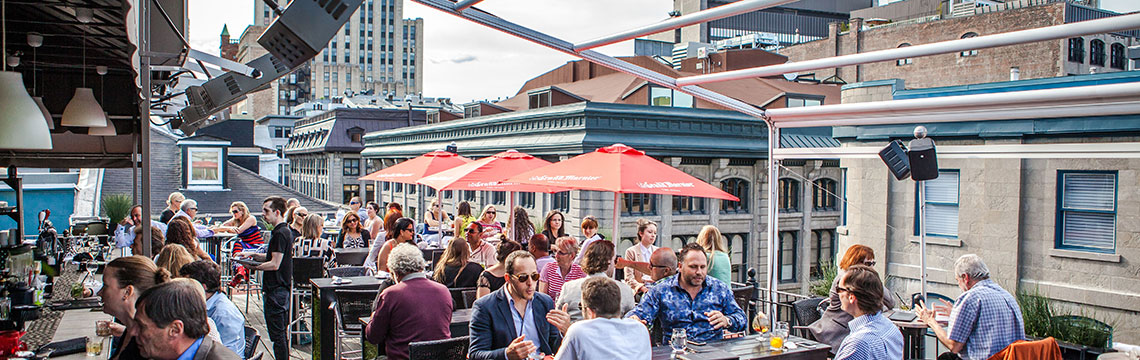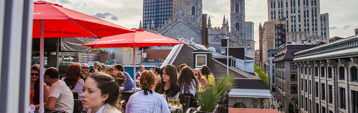 Montreal comes alive in the summer and there’s no better way to spend your day or night than sitting on a terrace with friends, eating and drinking, and enjoying a spectacular view of Montreal.