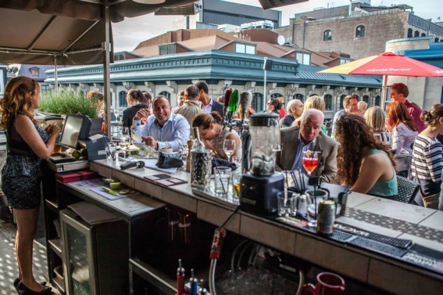 Terrasse Nelligan within the Hotel Nelligan stands out from the rest because rather than sitting above the other buildings, it is roof-level with Notre-Dame Basilica on one side, and the Old Montreal Port on the other. It’s a great spot to unwind after work and enjoy your cocktails with dishes straight from their outdoor grill.