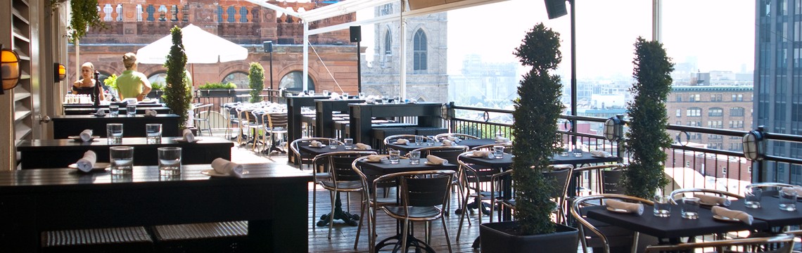 Part of Hotel Le Crystal on Rene-Levesque, La Coupole is a French brasserie in downtown Montreal. Its terrace has been revamped and split into two sections: a dining area and a lounge area. It is modeled in the style of an “urban garden” with plenty of greenery and retractable awnings so you can enjoy Chef Anne Desjardins’ fabulous fare, rain or shine.