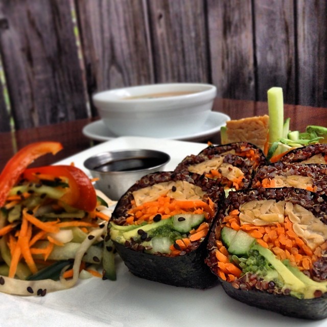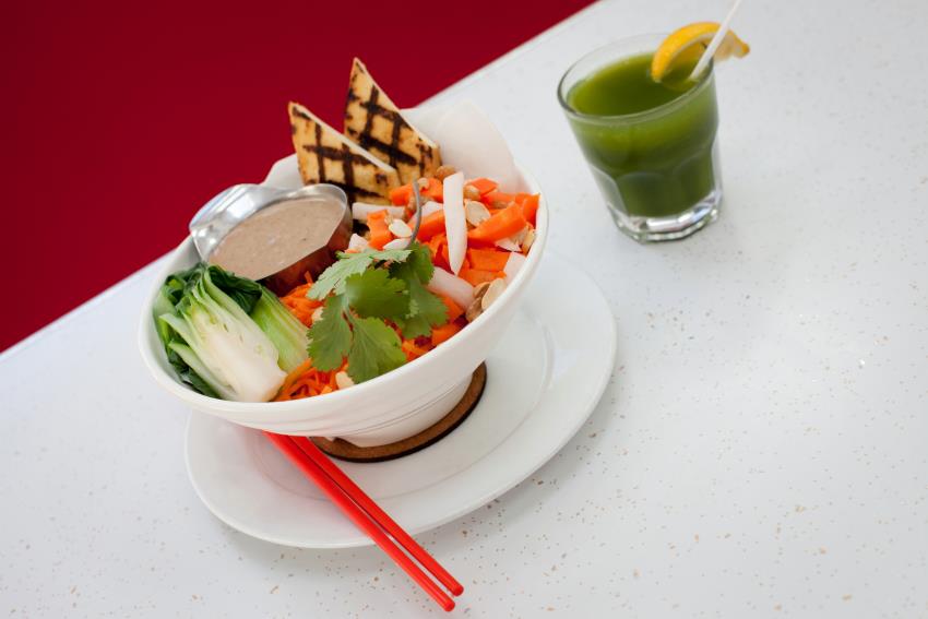 For dessert, their gluten-free Banana Chocolate Pie ($5.95) is one of the richest desserts to ever grace your lips. Aux Vivres also houses a fresh juice and smoothie bar sure to quell any fruit or veggie cravings your stomach may be growling for.