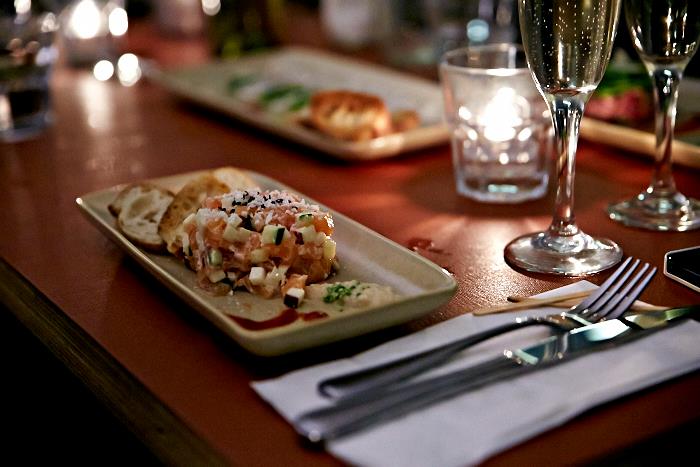 At Mme Lee, the stars of the menu are the cocktails. They can offer you classics or revisited classics, such as Mme Lee’s Iced Tea. They also have specialty cocktails, such as the Pimms Potager or the Cherry Lemonade with Hennessy. You can also enjoy a wide selection of hand-picked wine (private imports), as well as a healthy, fresh and easily sharable tapas menu. This menu also revisits some tasty classics, like their mango guacamole. Tuesdays are the best at Mme Lee: oysters are $1, while supplies last.