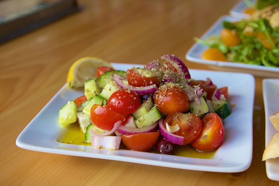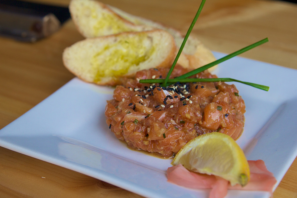 Which menu items might interest you: The Starter Plate (bruschetta, olive tapenade, and hummus served with grilled ciabatta bread), Loukaniko (greek sausage), Oysters, Shrimp on the Barbie, Tartares, Grilled Octopus, and our favourite by far, the Lil’ Mac (melted gruyère cheese, caramelized onions, and a special Bistro version of your favourite sauce).