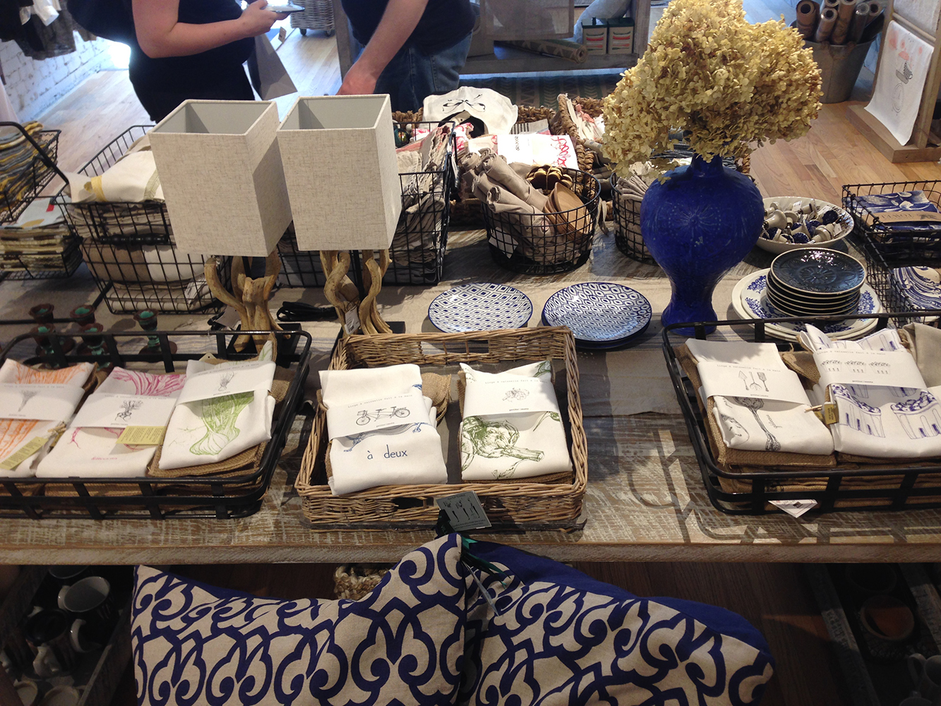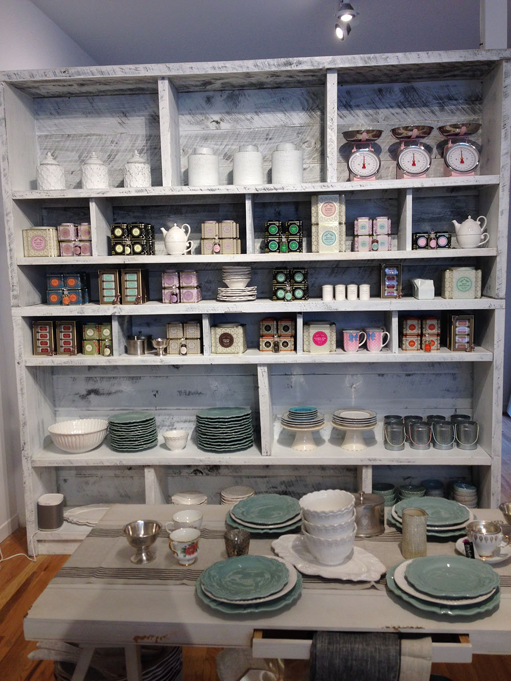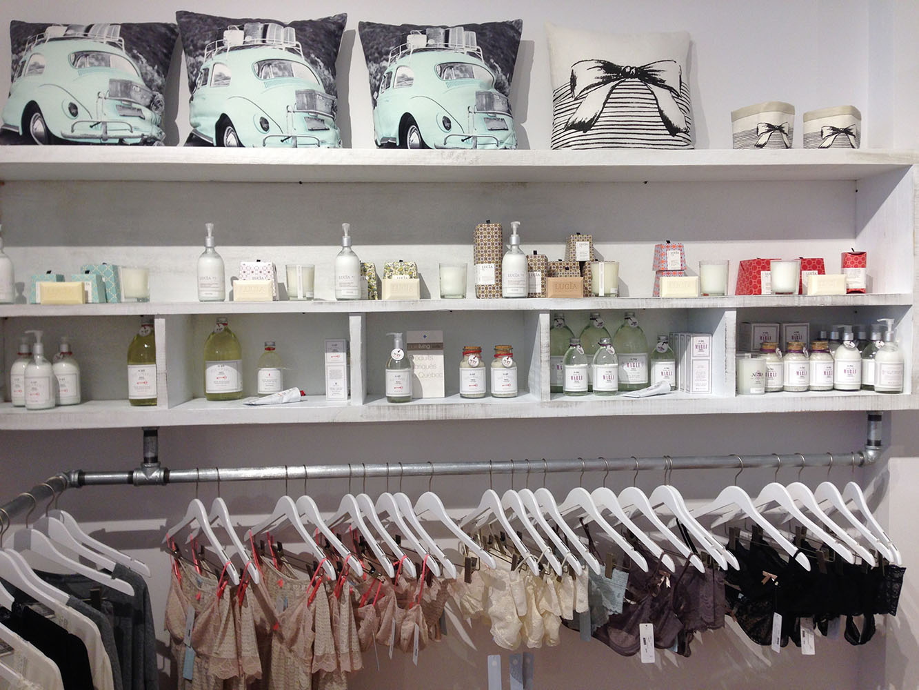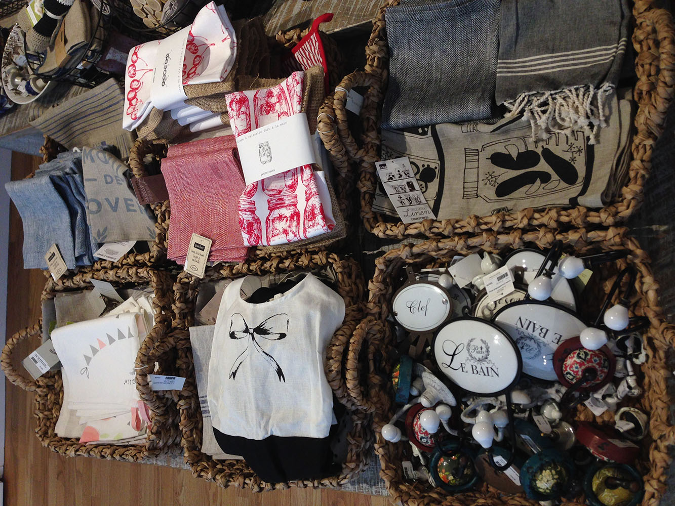 There is clothing hung along the walls and in the middle of the store there are items for your kitchen, such as placemats, cutlery, tablecloths, and much more. They also carry lingerie, candles, soaps, hand creams, teas, pillows, and jars, just to name a few. All of the teacups and cutlery are vintage, making each of them unique. The jewelry is handmade from New York and Montreal, supporting our local artisans.