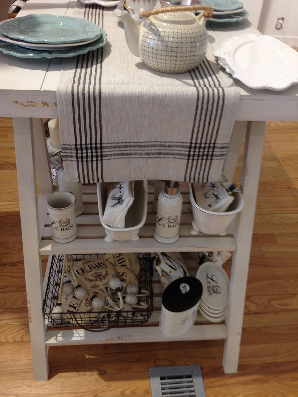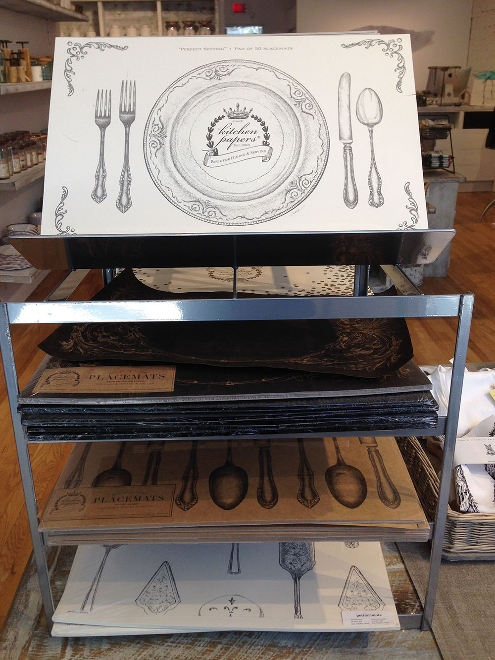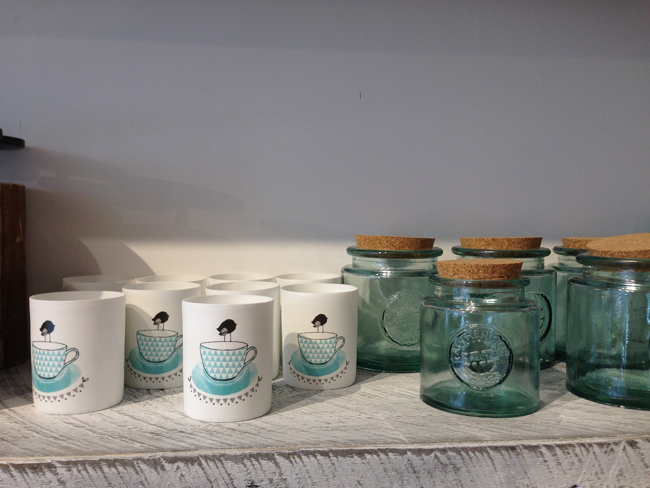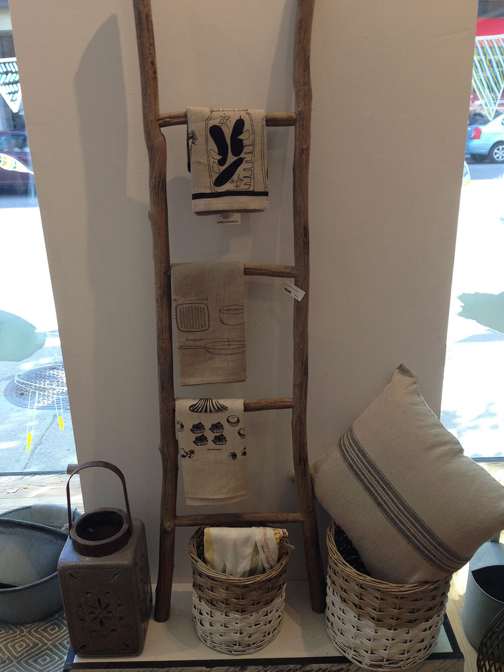 There is clothing hung along the walls and in the middle of the store there are items for your kitchen, such as placemats, cutlery, tablecloths, and much more. They also carry lingerie, candles, soaps, hand creams, teas, pillows, and jars, just to name a few. All of the teacups and cutlery are vintage, making each of them unique. The jewelry is handmade from New York and Montreal, supporting our local artisans.