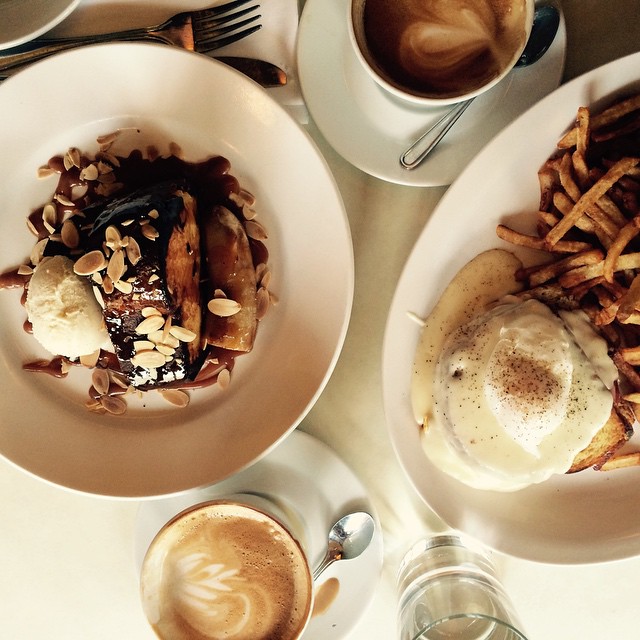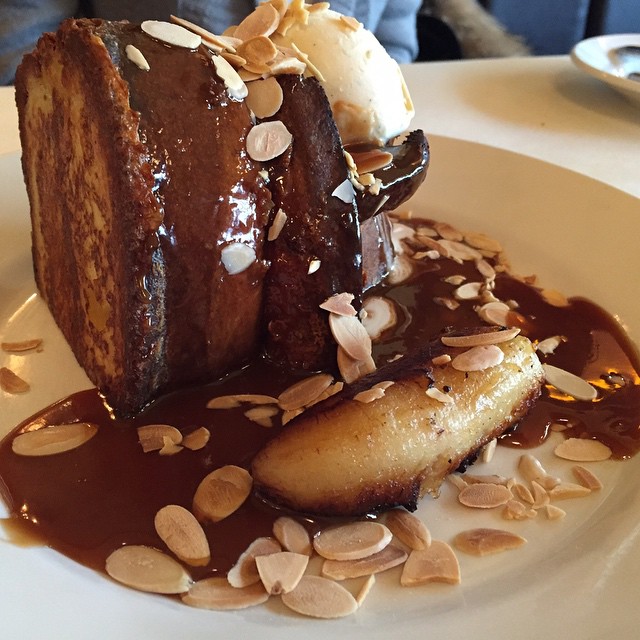 Brasserie Bernard serves an incredible brunch on the weekends with inspirations from Parisian street food and French classics. For the sweet tooth among you, the pain doré ($13) with caramelized bananas, chocolate-nut ganache, salted butter caramel, and vanilla ice cream is out of this world. The dish isn’t overly sweet and when the ice cream melts into the salted butter caramel, you’ll be treated to a sweet and creamy dipping sauce. The French toast is light and fluffy and soaks in the sauces perfectly.