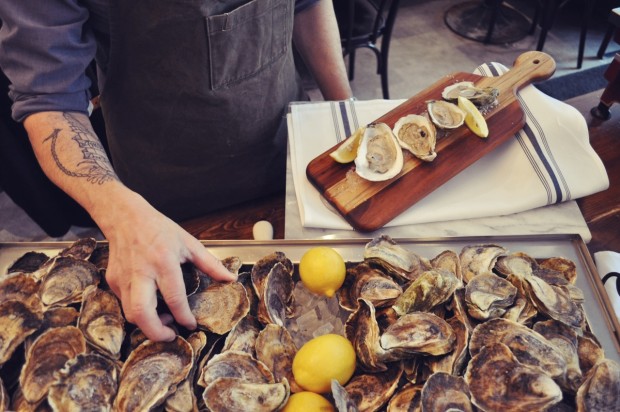 There is a very peculiar feeling associated with the realization that something you see every day is actually a gem in disguise. Someone might pass a given restaurant on their way to work every morning and never actually realize that behind the familiar storefront and darkened windows lies something exciting and new. That “A-ha!” moment is exactly how we felt after visiting Brasserie Central. Nestled in Westmount’s section of Sherbrooke Street, the restaurant took us by surprise in the best of ways. Interesting retro-urban feel, a menu worth talking about, and a 5-à-whenever oyster & Prosecco special.