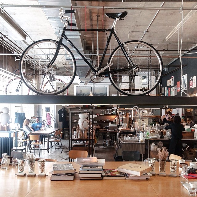 You can find Café Falco situated on the main level of a warehouse building in the Mile End, between Bernard St. and Viateur St. Falco exudes industrialism within its design: Grey concrete floors, tall ceilings and vintage sewing machines are amongst the many objects that have been chosen to occupy this locale, resulting in nothing less than a visually pleasing experience.