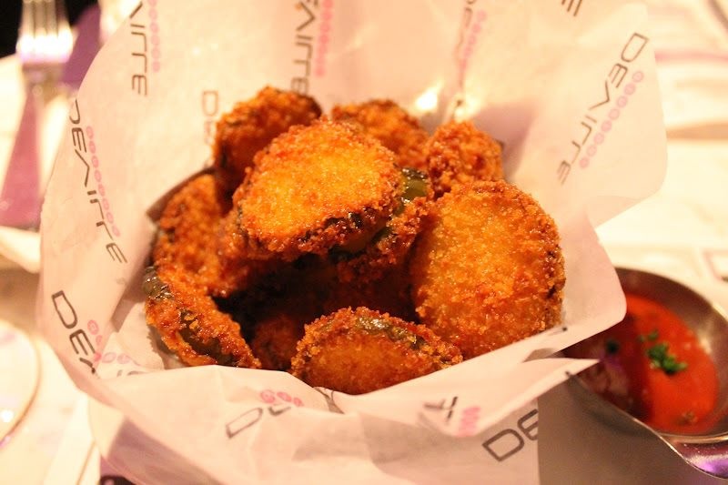 The menu is extensive, but some of the best dishes can be found on the first page. Their appetizers are what really make Deville stand out. Their Crispy Mac & Cheese Stuffed Wontons at $12 (yes, you read that correctly) will make you wonder how you’ve ever lived without tasting these cheesy treasures. The Philly Cheesesteak Spring Rolls, with BBQ beef short-rib, will melt in your mouth. Who comes up with this stuff? Don’t forget the Deep Fried Pickles ($9) with maple Dijon and picante ketchup for the holy trinity of Deville entrées.