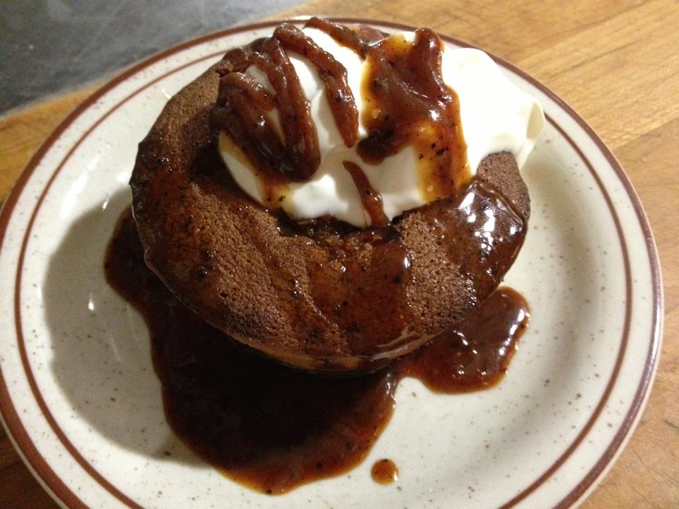 The dessert list includes three choices, one of which is the warm apple cake infused with cinnamon and a side of vanilla ice cream.