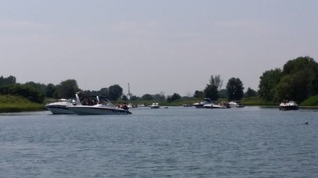 Hidden in the tributary is a boating haven, where people come to set anchor, blare music, eat, drink, swim, and party. It was a shocking revelation that the boat parties one sees in American movies are both real and actually happen in Montreal. Many boats were strapped to each other, others were floating alone, but all were enjoying the beautiful day. And what is even more surprising is that the boats ranged from those two story yachts to small aluminum dinghies, but being part of boat culture made whatever divisions exist on land disappear. The people at Discoverboating.ca certainly opened our eyes to new possibilities!