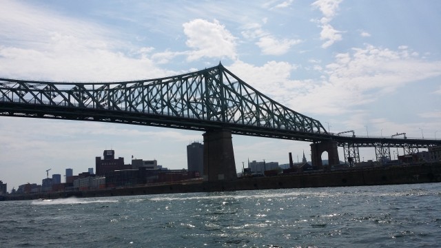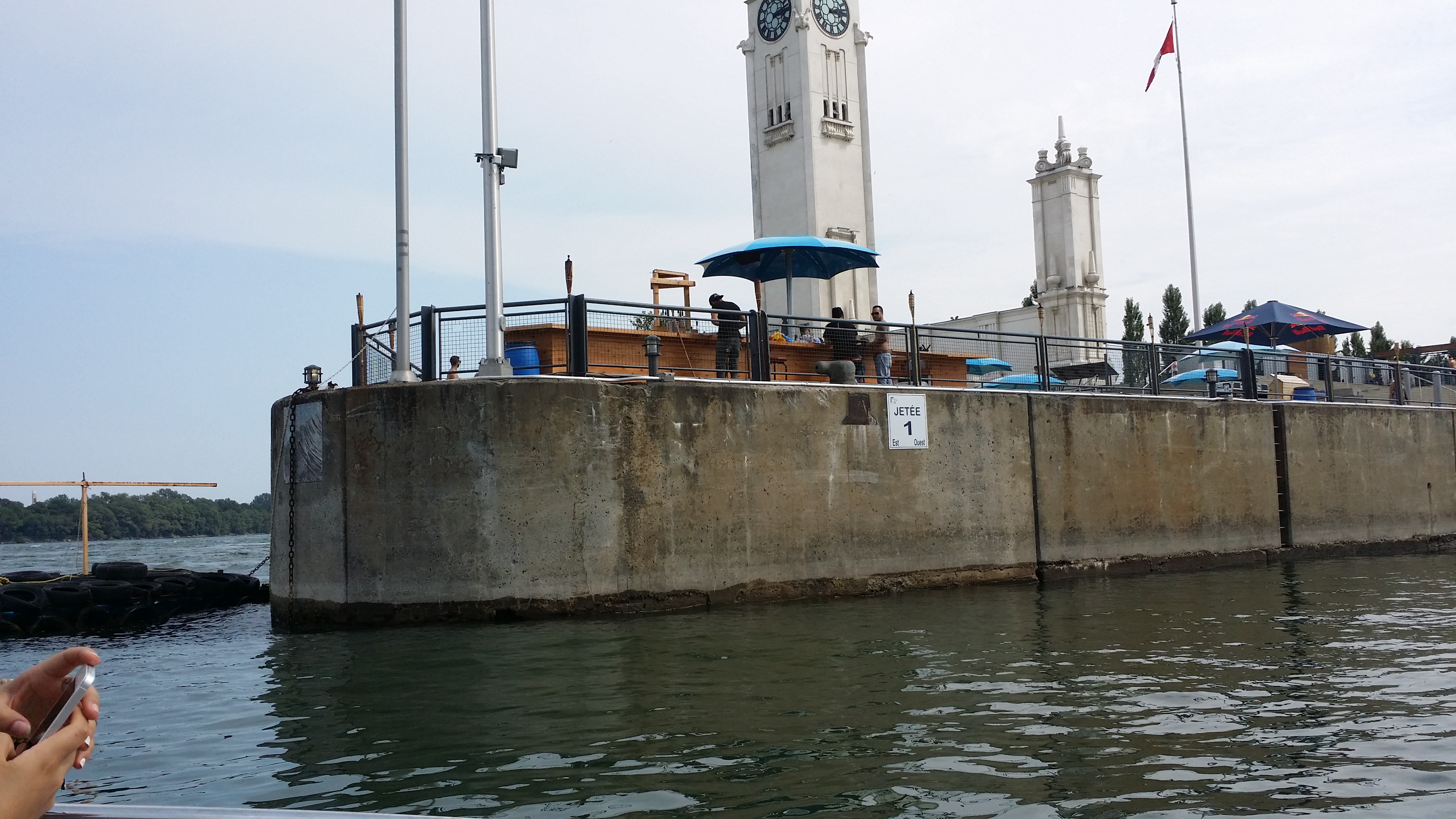 Departing from the Montreal Yacht Club, we were divided into two medium deck boats. For those of you (like us) who have no idea what a deck boat is, it’s the kind of boat you typically see on lakes. It is not a yacht with 2 floors and an indoor space, just an open air boat with space to do things like enjoying high speeds on a bumpy St-Lawrence. Being on a boat with an experienced captain can either feel like you are flying with wind blowing in your hair and sun darkening your skin, or like a rollercoaster ride, with ups and downs to make you involuntarily grab onto the rail as you laugh.