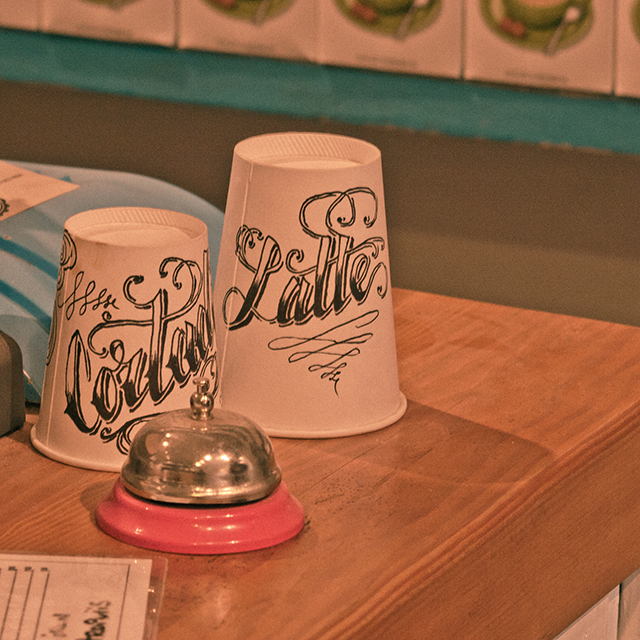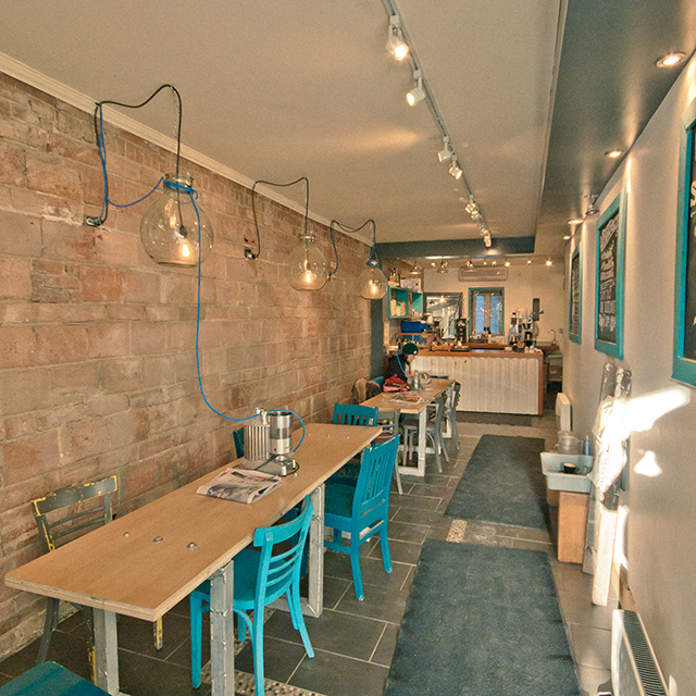 The narrow but welcoming corridor is the ideal spot for those on the go, looking for a superior caffeine fix. The space is filled by vintage décor and blue accents, which add a retro look. Although they do have two small communal tables set up, the seating is limited. However, the personal space provided invites a cozy atmosphere to study for those lucky enough to land a seat!