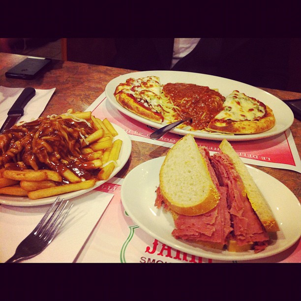 Jarry provides customers with a wide variety of menu choices, ranging from soups and salads, to souvlaki, club sandwiches, poutines and of course their well-known signature smoked meat sandwiches. Must-try dishes include the famous Jarry Smoked Meat Poutine, and their Smoked Meat Pizza.