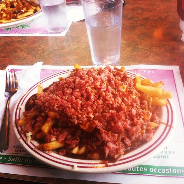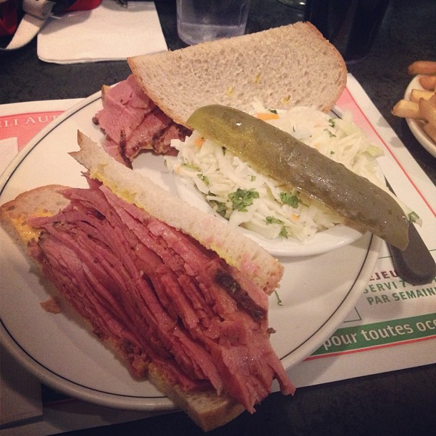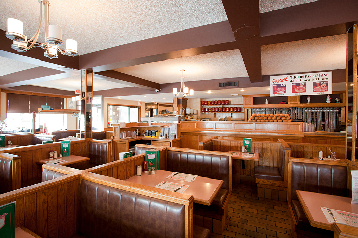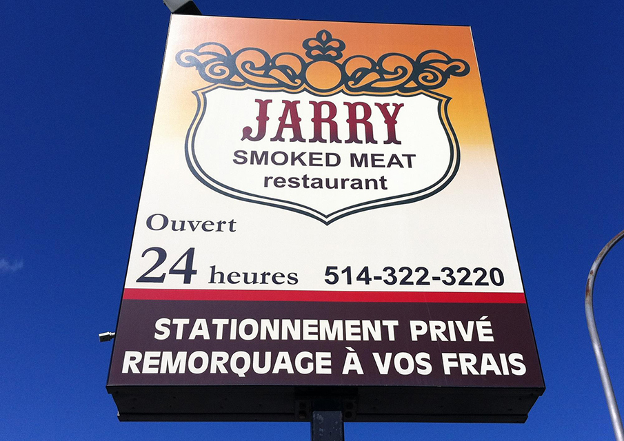 Jarry Smoked Meat is one of the rare spots that’s preserved its authenticity over the last four decades. Situated in Saint-Leonard this 24/7 diner has been serving regulars and out of towers Grade-A smoked meat dishes as well as other savoury homemade comfort food dishes since it first opened its doors in 1974. Club-goers, over-night workers, or anyone with a late-night itch looking for a homemade, late night meal are welcomed openly and graciously by a hard-working, friendly staff! Jarry has preserved its authenticity through it’s menu, as well as its 70’s oriented décor and ambiance. This little diner exhibits comfort and familial presence through a timeless display of upholstered booths, hanging yellow lamps, and wood paneled walls. Owned by the same family since inception, Jarry is all about staying true to their clientele.
