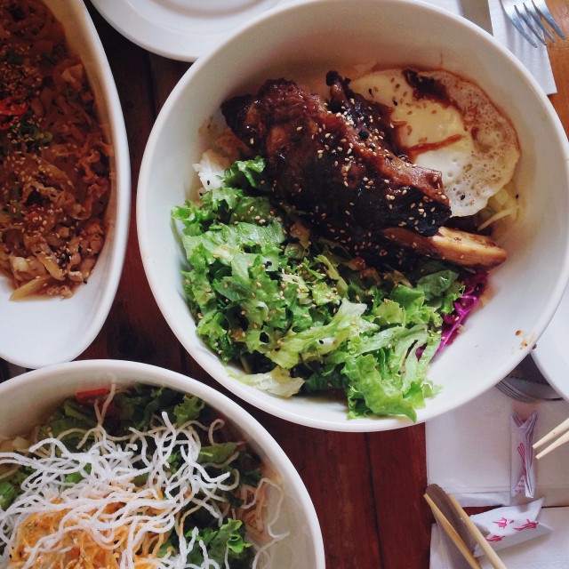 The cuisine itself is exquisite and is the epitome of the Kazu experience. One of their most popular dishes is their tuna and salmon salad rice bowl, consisting of vinegar rice and crispy lettuce accompanied by silky pieces of tuna and salmon tartare. Another popular order is the restaurant’s twist on bibimbap. Their bowl of crunchy rice, colorful vegetables, and runny egg is often topped with a prime piece of melt-in-your-mouth beef that slides right off the bone. The shrimp burger is another favourite, made with black tiger shrimp enveloped in a delicious and fluffy bun.