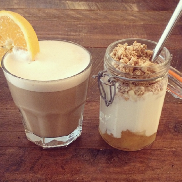 The ambiance at Kitsuné is definitely one that’ll have you coming back, especially with its friendly staff. The communal seating arrangements allow for an array of clientele from students to bloggers and writers, music lovers and cyclists, to come across one another for good conversation; there are always interesting people to meet buzzing in and out of here all day long! It’s one of those places that will charm any café connoisseur. With the “third wave” coffee trend slowly dominating in direct trade coffee and high quality beans, it has created this high demand for using flawless techniques for producing coffee which is setting standards for baristas worldwide. Kitsuné didn’t shy away from picking up on this and incorporating the art of coffee into their café. Each beverage is measured with precision and all lattes are finished with latte art, which you promptly destroy with your first sip. Among their knowledgeable baristas, there is also a small selection of local bakers treats that change daily along with a personal favourite, a homemade peach-ginger jam topped with plain yogurt and granola.