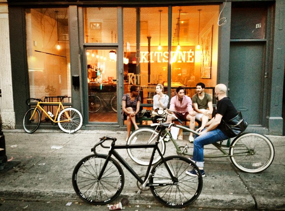 Kitsuné (Japanese word for fox) Espresso Bar is a place where specialty coffee and craftsmanship are combined. When Montreal designer François Beauregard of Space FB (known for his attention to detail designs and excellent garment quality) opened the doors of Kitsuné this past summer with his partner, it instantly became a go-to spot for all of the neighbours encompassing The Main. The same attention to detail is reflected in his café; with it’s industrial concept and minimalist aesthetic, Beauregard wanted this space to be a place where people could feel comfortable enough to hang out in or loiter around outside. Richard John, who manages Kitsuné incorporated his love for music and cycling into this tiny space where cyclists can come and leave their bikes at the bike rack installed inside and the lovers of vinyl can come spin their records on the turntable every Wednesday.