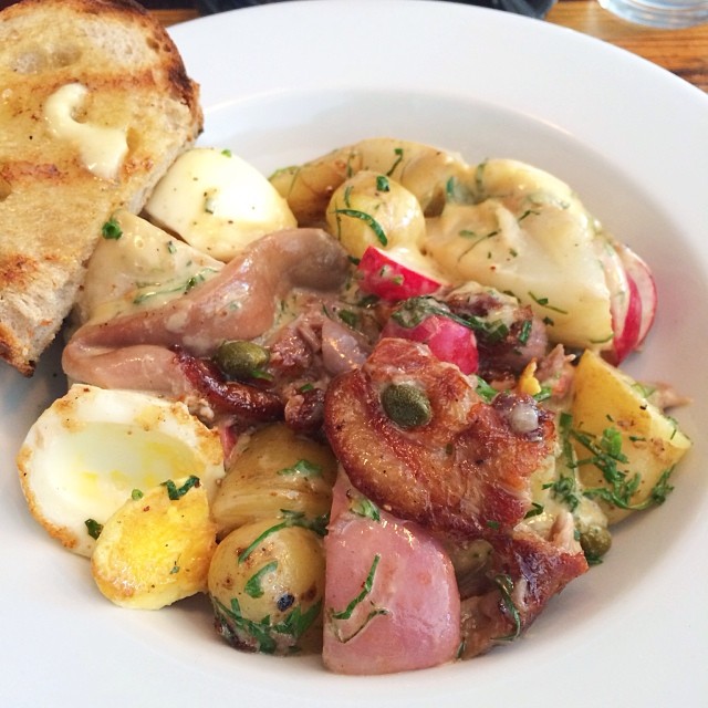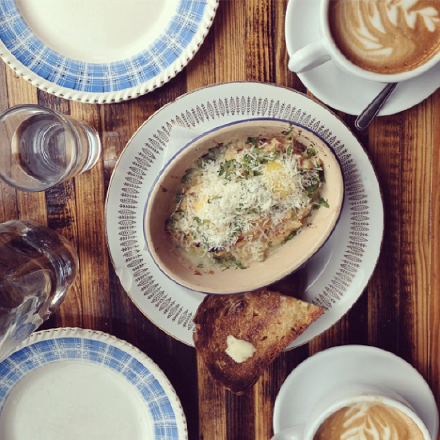 Do things backwards and start your meal with their trio of donuts filled with custard, lemon cream and chocolate, they’re just the right amount of sweet. All of Lawrence’s main brunch dishes are hearty so don’t let portion sizes fool you; you’ll walk out with a full belly every time. The menu caters to the foodie looking to try anything once. Changing regularly in accordance with what’s available locally and in season, Lawrence’s menu proves to use innovative ways to use all parts of the animal for rich in flavour and comforting meals. You might want to challenge yourself to try something new like devilled kidneys on toast or pigs trotter, but if you aren’t up for it they serve up a satisfying scrapple fried eggs and bacon dish that’ll have you salivating for more.