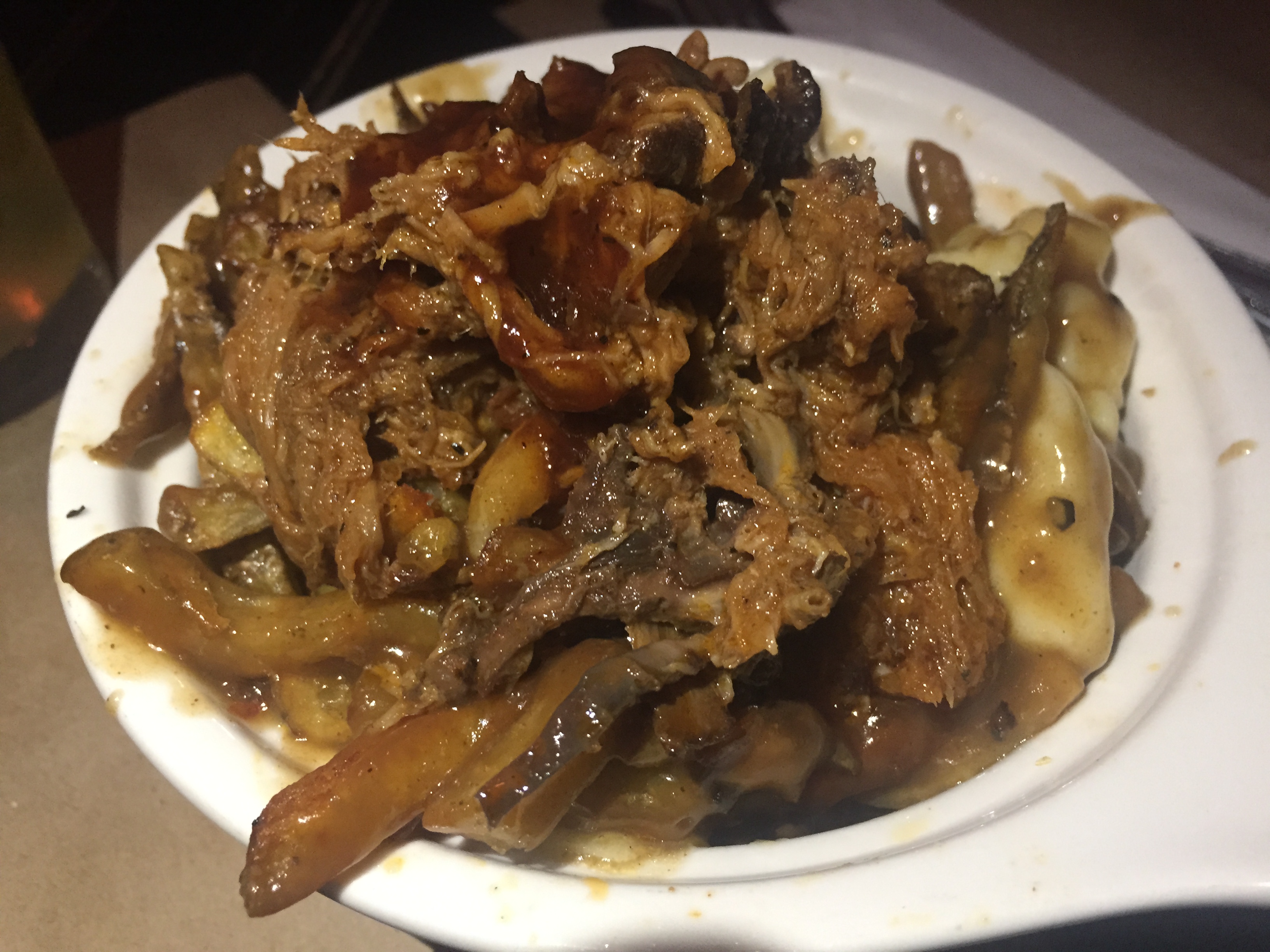 Le bOucan has great pulled pork, possibly the best in the city. It comes in sandwich form topped with crunchy coleslaw ($15) or in poutine form ($9 or $15). The poutine stands alone beautifully. It has an interesting balance of brown gravy and barbecue sauce such that the pulled pork and French fries become equally delicious. Beware the “Reg” sized poutine though… it’s really more like a platter of poutine. It will take at least 2-3 beers to finish one of those. But no one would complain with the great selection of beer that Le bOucan has to offer, including the Montreal exclusive Bierbrier ($6.25). You may get a free round if you contribute to their big wall of money. With easily over 40 bills from countries around the world, it’s definitely worth taking a look at.