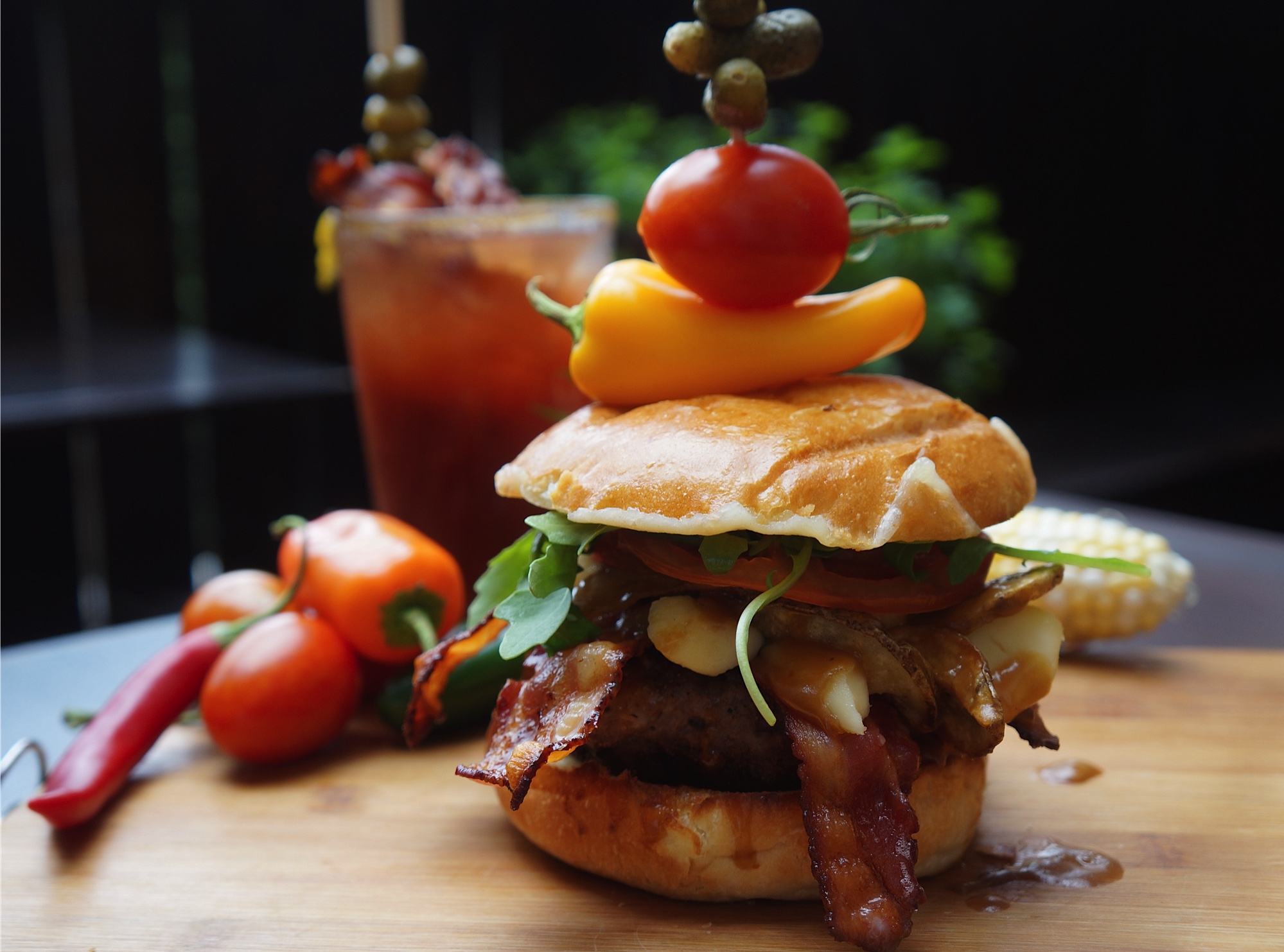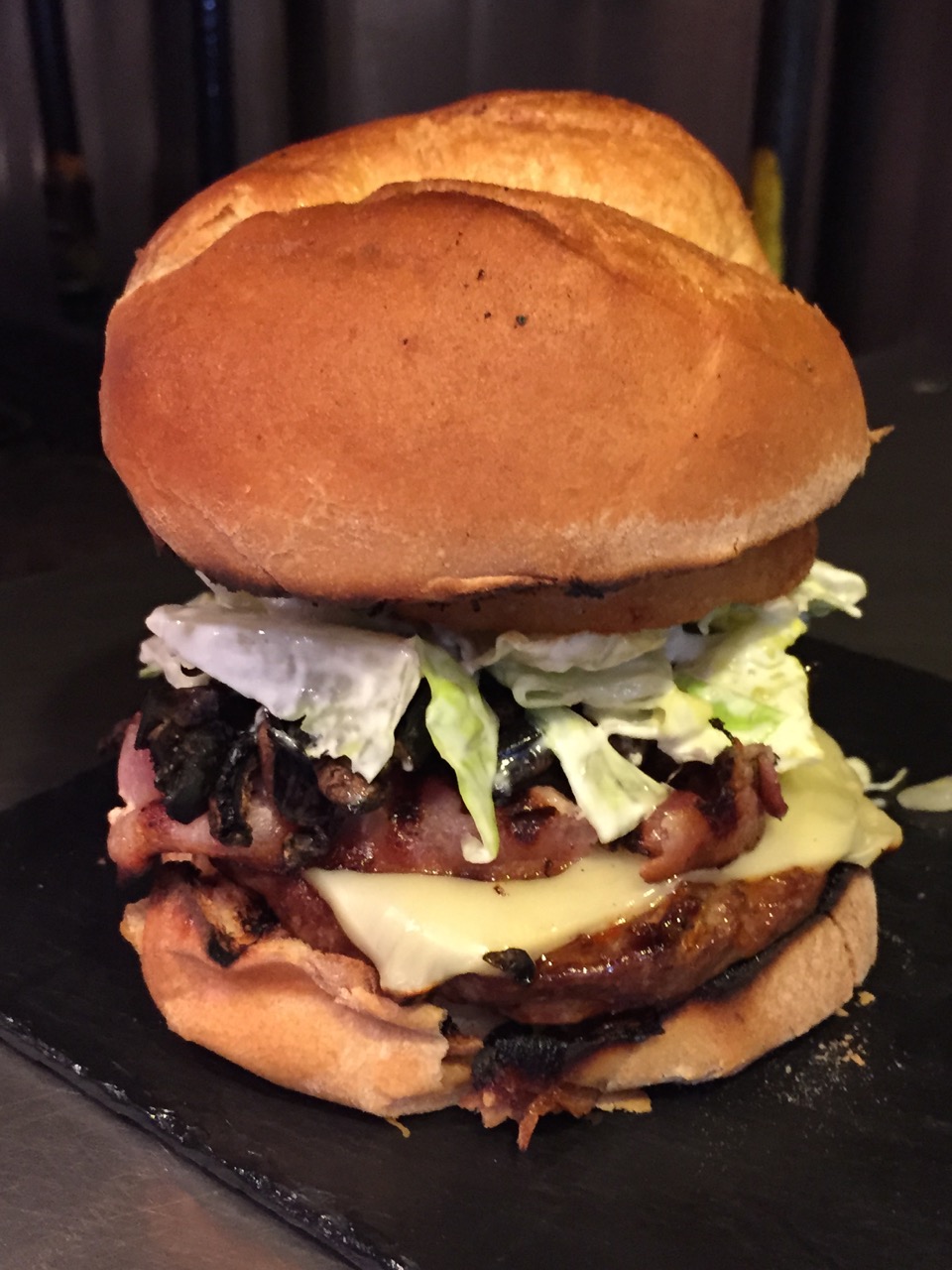Who’s Your Daddy Caveman Burger @ ART:BRGR. An ode to meatatarians everywhere with ribs, bacon, and black forest ham on top of a AAA patty with a whiskey and mango BBQ sauce.