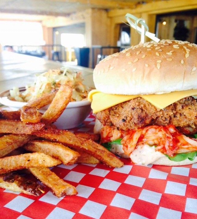 The Korean Chicken Burger @ Brasserie Rachel Rachel. Korean fried chicken with kimchi and harissa mayonnaise will make most mouths wish for a little water as they down this devilishly spicy burger.