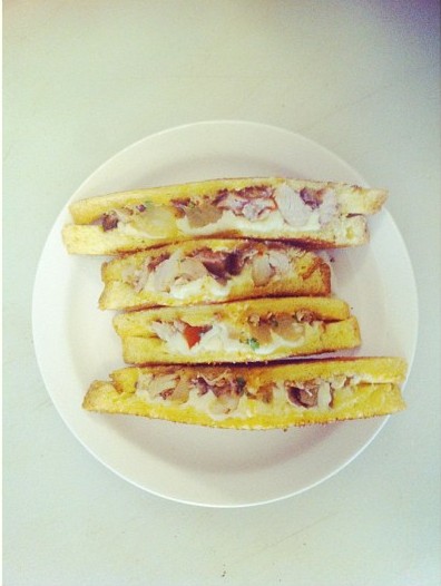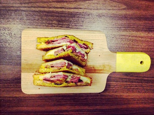 During a special media event a few days later, we were lucky enough to try out even more of Le Cheese‘s offerings. Along with yet another 3-liter beer tower, we were served a platter of buttery grilled cheese on challah bread, spicy Marinara grilled cheese with Italian sausage, and some wildly underrated crispy mashed potato tater-tots.