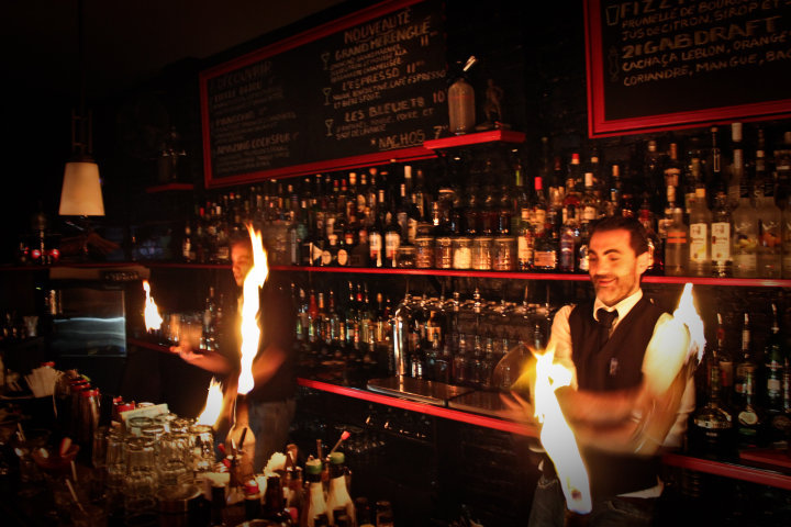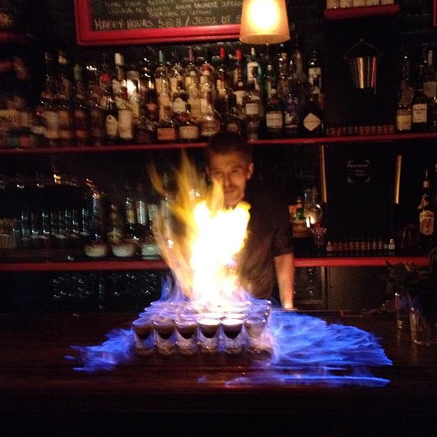 Le Lab menu has a diverse repertoire of shots and drinks, but it is their shot, Camp Fire #3, that needs recognition. This delicious shot includes Sirop Première Nation Fumé, Pommeau de Normandie brandy and Calvados Pays d’Auge brandy. Patrons are given a stick with mini marshmallows on it and a straw. The shot is set on fire; patrons roast their marshmallows over the fire and then drink the shot through the straw while it is still on fire. To the ladies with long hair, make sure your hair is not near your face when having any of the fire shots.
