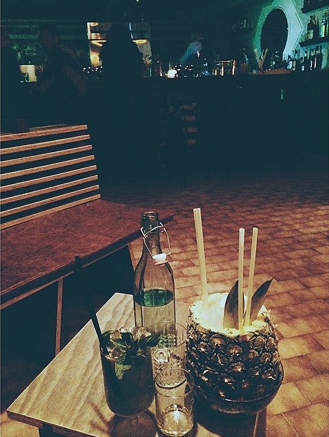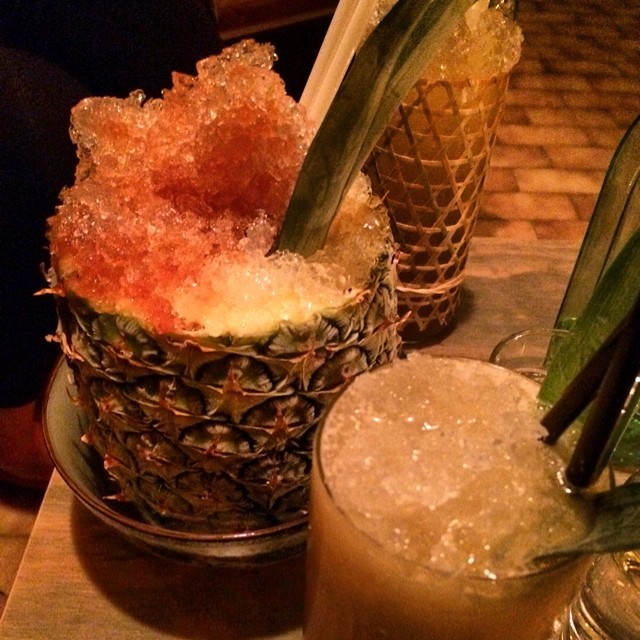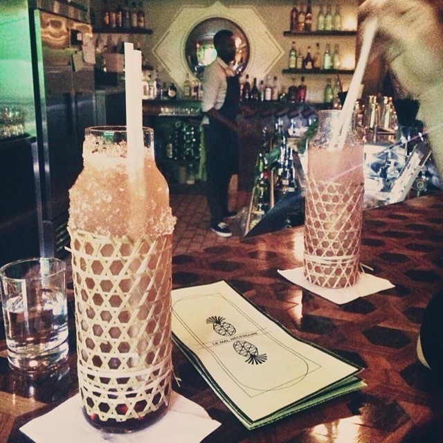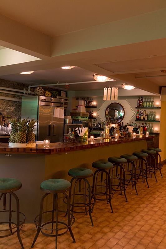 Dave Schmidt, the mastermind behind Café Sardine, Datcha, and Maïs, is behind this new project, so you may see some familiar and friendly faces at the bar. With a variety of impressive drinks carved out of fresh fruit, you can sip your Abacaxi Mai Tai (two different kinds of rum, Cointreau, lime kaffir, orgeat, and pineapple juice) out of a pineapple ($22) or a Dirty South (Cachaça, coconut water, orgeat, lemon, bitters) out of a coconut ($18). The prices are steep, but each drink has 5oz of alcohol and is served with the entire fruit. If you keep your fruit for your next round of cocktails, you’ll save $2.