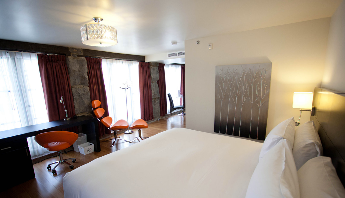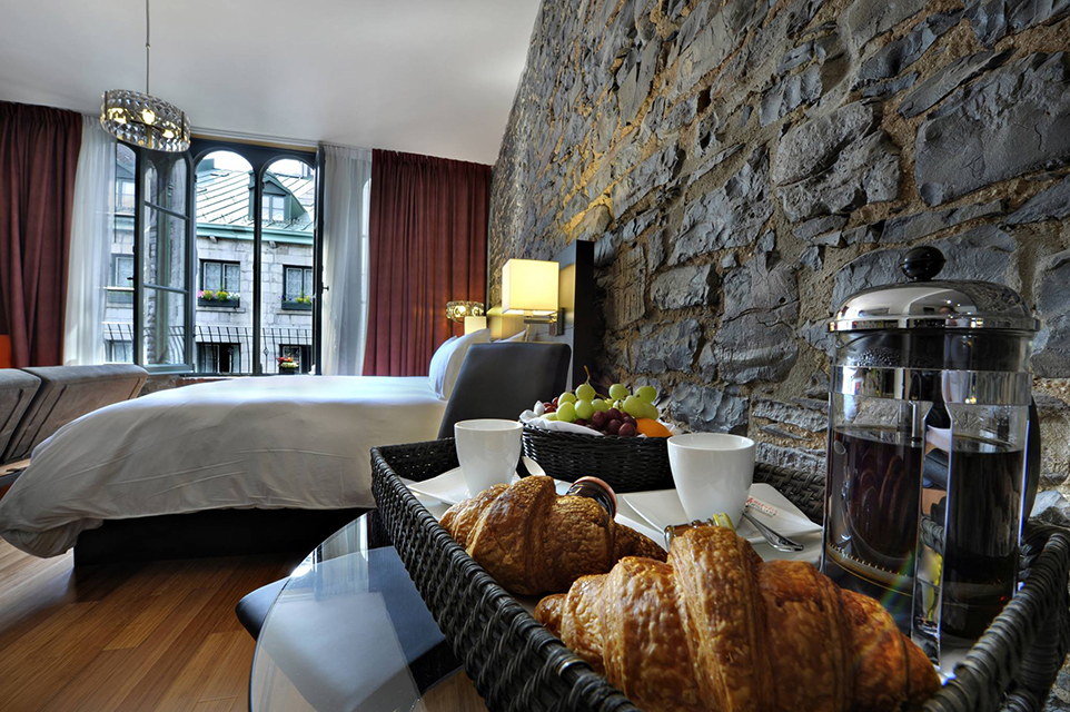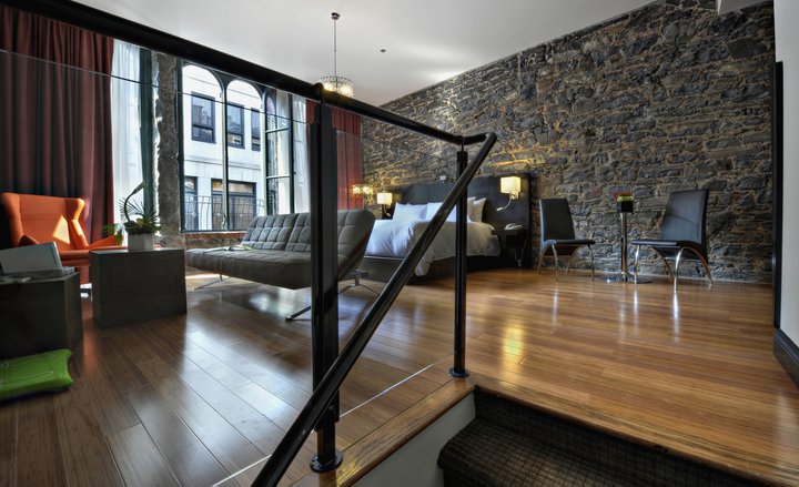 Located in the heart of Old Montreal, this trendy boutique hotel fits right into its chic and artsy neighbourhood. The building dates back to the nineteenth century and as such, you’ll notice cobblestone walls and detailing nearly everywhere in the hotel. Despite the age of the building, Le Petit Hotel is contemporary and stylish as can be. A predominantly black and white theme with splashes of red and burgundy make for a modern and beautiful setting. What’s more, the lobby is covered in remarkable graffiti art. At Le Petit Hotel, 28 comfortable and luxurious rooms complete with goose down duvets, Wi-Fi, large LCD TVs, and 24h room service await you. The extra large rooms even come with a Nintendo Wii! Adding to all this charm is Le Petit Café in the hotel lobby, which offers continental breakfast, fresh pastries and coffee. The bar stays open throughout the day for anyone in the mood for a drink. With all this to offer and more, it’s no wonder the hotel won a 2013 Travelers’ Choice Award. With its chic and modern panache, Le Petit Hotel & Café have become one of the trendiest boutique hotels in Montreal. The best part is, you’re just footsteps away from some of the best restaurants and bars in the city.