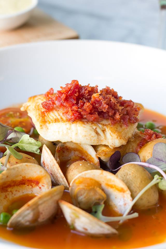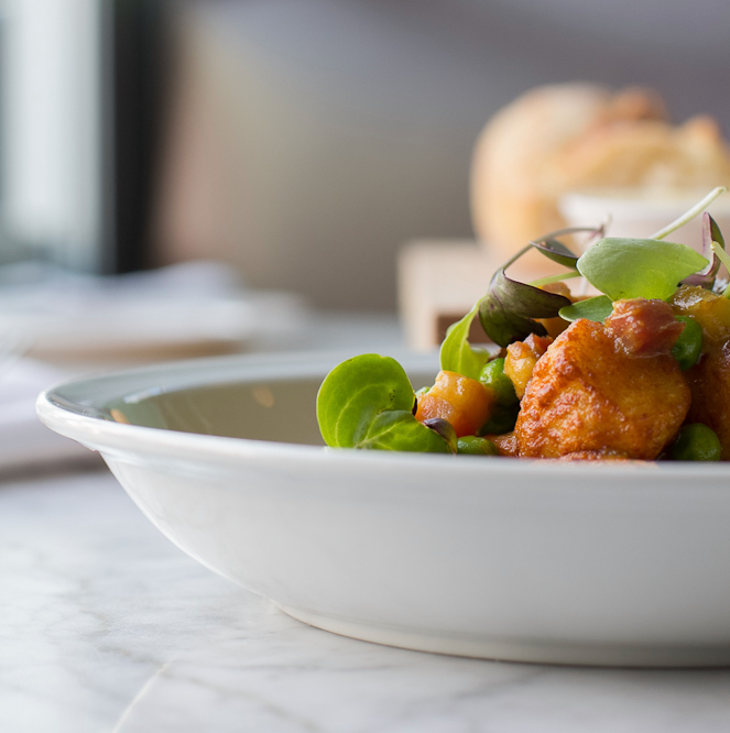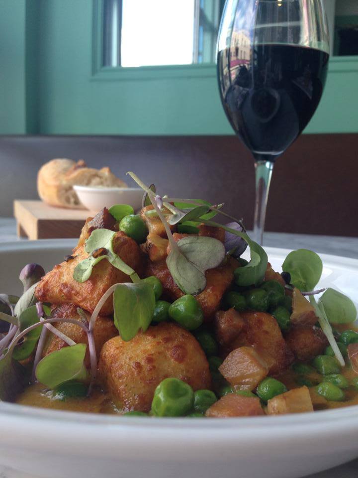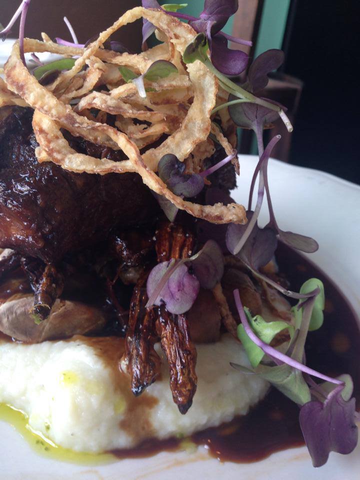 Its food is no different: lobster on a salty French toast with bacon marmalade ($17) or slightly fried gnocchi with lardon, that wonderfully thick bacon, in a crab and truffle oil sauce ($14). These light entrées are as delicious as they are interesting. Salty French toast to make a lobster roll? Love it! And did we mention that everything is homemade? It shows too, because each dish seems to have an item that is slightly different than one would expect. Especially the Pork belly topped by a peach chutneywith an onsen egg on the most mouthwatering buttermilk biscuit north of the border ($16). If you have never had an onsen egg, you’ll be delighted to know that it is the pulled pork of eggs: slow cooked at 62.5°C for 45 minutes to make melt in your mouth delicious.