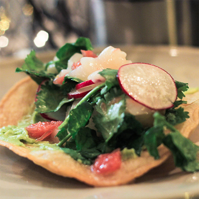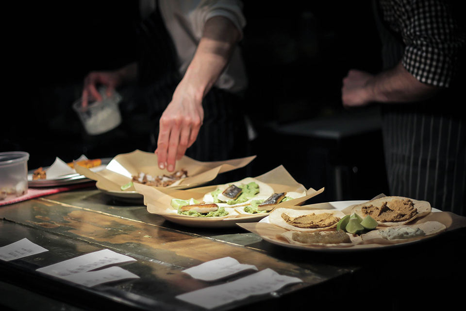 Fairly new in town, MAÏS is already making an impact on Montrealers’ love for tacos. MAÏS is a sit-down restaurant with a very relaxed and laid-back atmosphere. The décor has an old-school feel to it, with wooden furniture, interesting ornaments on the walls, and mellow lighting for an all-around calm and enjoyable environment. Seating arrangements are intimate and placed in a manner that encourages interaction. Take for example one of their tables, a long bar-like wooden structure that can accommodate several groups; bringing the bar concept into the kitchen.