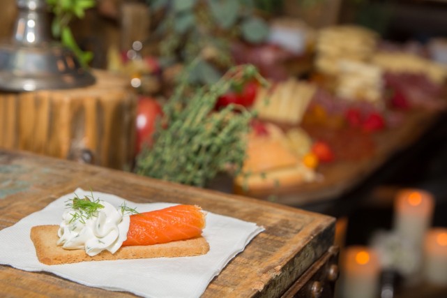The lamb chops were another favourite of the evening. No one cared that they had to eat them with their hands; they were that good! The crostinis with smoked salmon and crème fraîche were a delightful fresh bite to contrast the other meatier options.