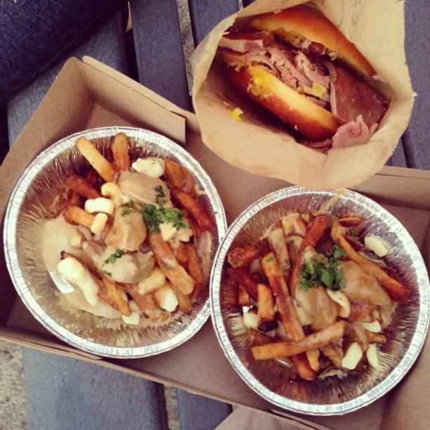 Au Pied de Cochon is one of Montreal’s finest dining establishments, and the restaurant’s truck succeeds in delivering dishes of the same exquisite quality. They’ve got sweet and salty dishes, often made with delicious pork, like their infamous poutine foie gras or their beigne cochon, a doughnut sandwich with smoked meat, ham, and pig’s tongue.