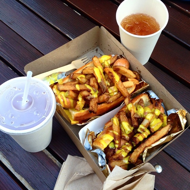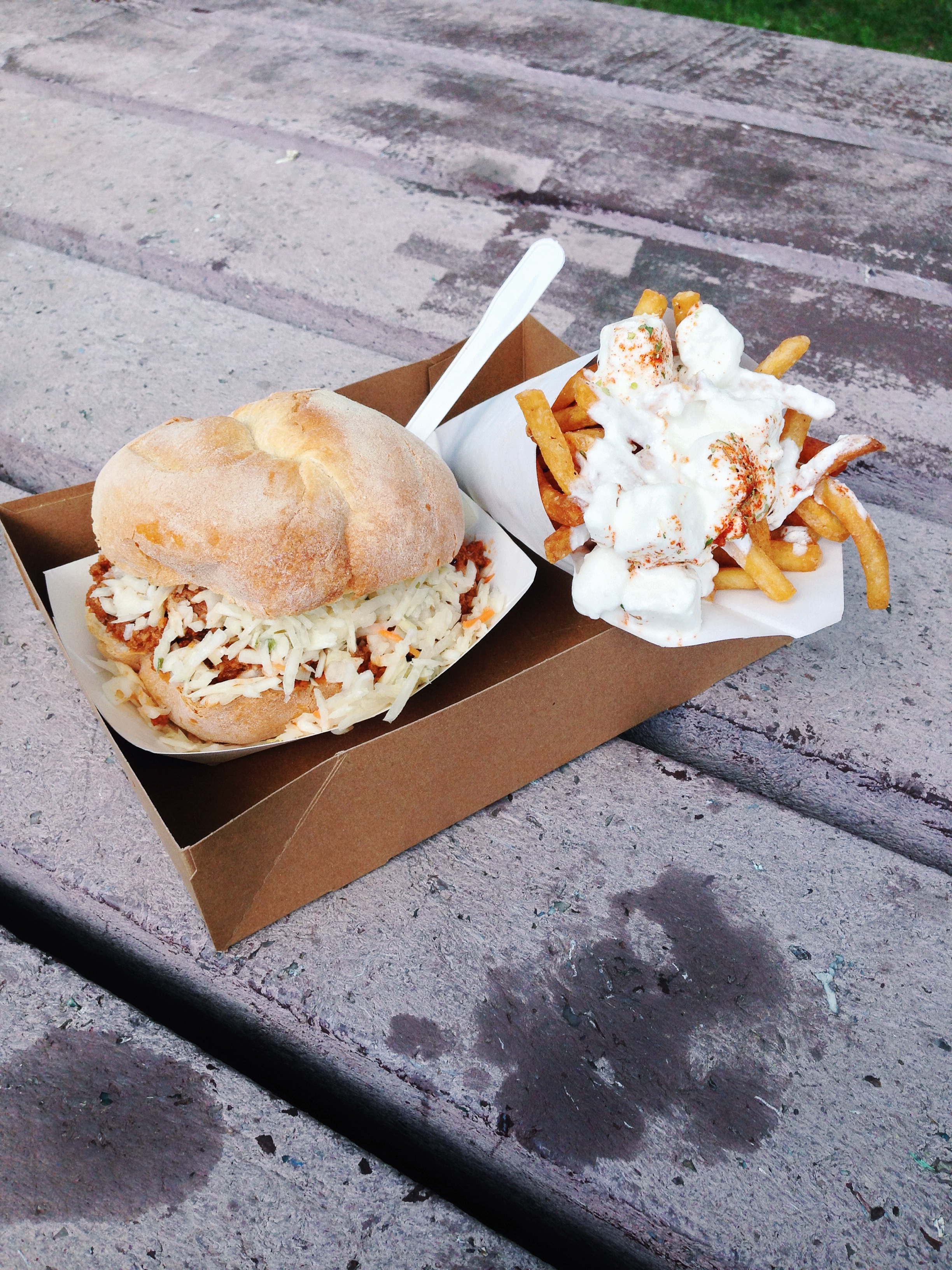 One of the best summer feelings in Montreal is stumbling upon a food truck when you least expect it, and we were so glad to have stumbled upon Roux. Their beef sandwich is a fantastic combination of flavours with cream cheese and grilled peppers. They also serve golden fries with homemade spicy ketchup and curry mayonnaise.