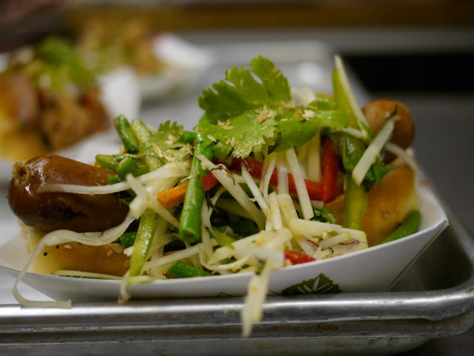 Go beyond ketchup and mustard in your hot dog and try adding carrots, daikon, and coriander. Chaud Dogs is known for its hand-crafted hot dogs that are topped with unique ingredients. Their Vietnamese hot dog, containing the aforementioned ingredients, is especially delicious. For a trip down memory lane, try their corn dog with jalapeno and cheddar.