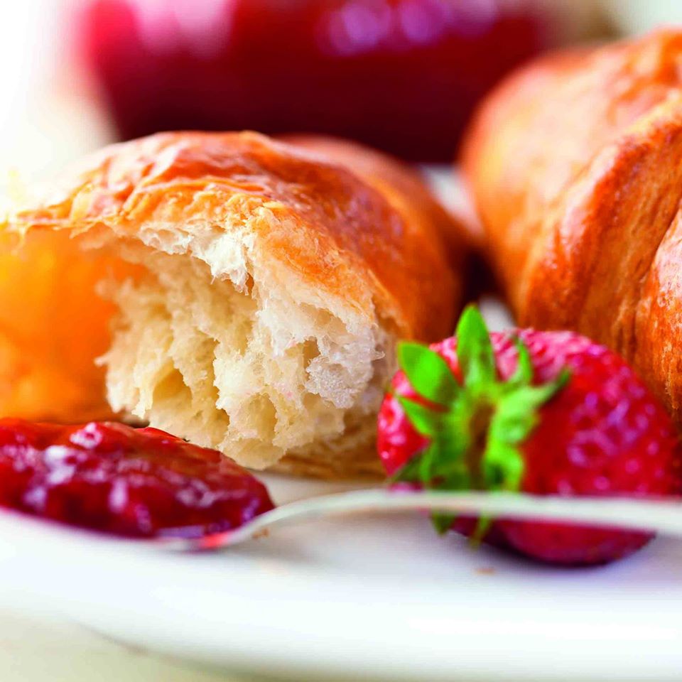 We began with a side bowl of fresh fruit and a warm brioche and flakey croissant that we lathered with jam. The biggest challenge that morning was choosing between the strawberry, raspberry, orange, and peach jams, so instead we experimented the different flavours with every bite.