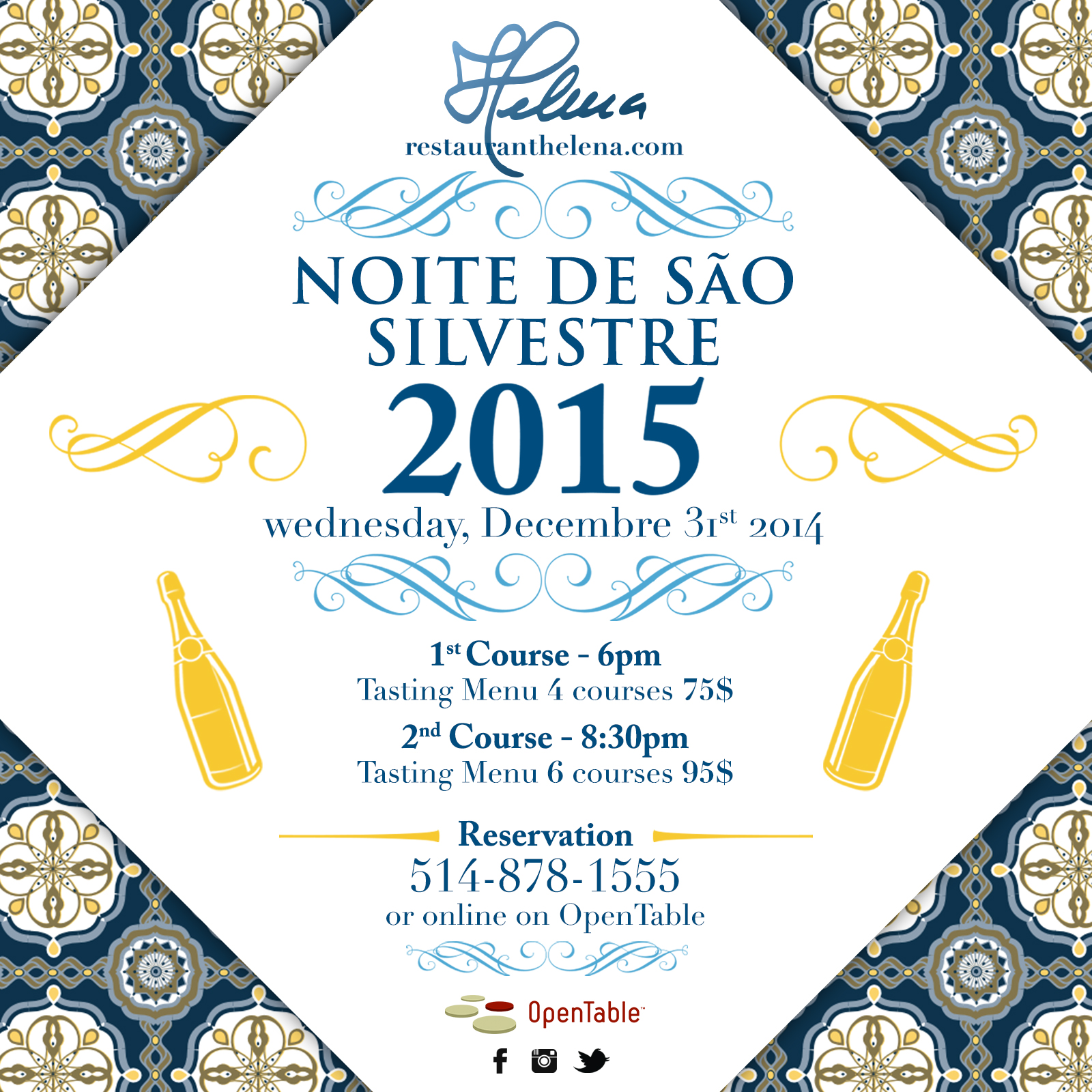 Helena is offering a “Noite de São Silvestre,” ringing in the New Year Portuguese style. A 4 course menu at 6:00pm is offered for $75 and a 6 course menu is offered at 8:30pm for $95. You can be sure the menu will be filled with delicious Portuguese fare.