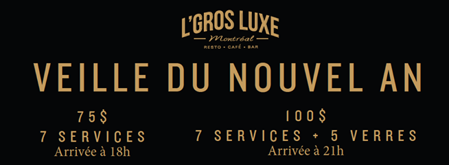 L’Gros Luxe is known for their fun and cheap eats, so we know that their New Year’s Eve party will be loads of fun. If you arrive at 6:00pm, you can enjoy 7 courses for $75, and after 9:00pm you can enjoy 7 courses and 5 cocktails for $100. Their courses include oysters, beef or salmon tartare, steak, and much more. With two locations, you can choose if you want to party in the Plateau or Mile End.