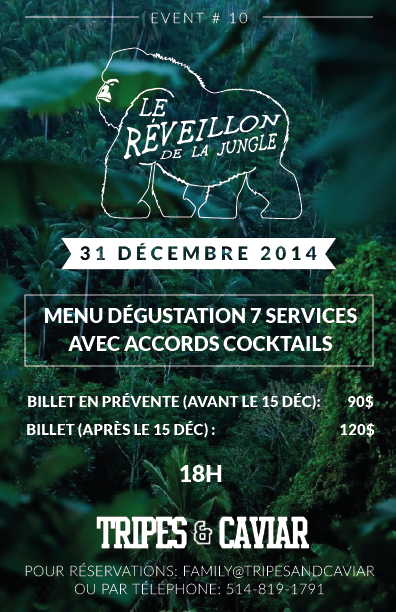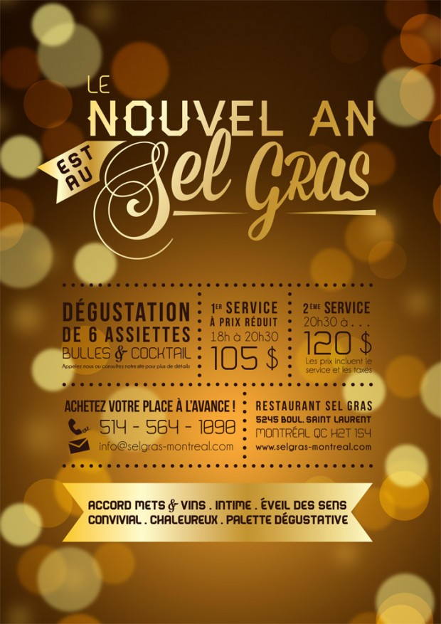 Kyozon is offering several options from $28 to $119 for what they’re calling New Year’s Eve Kamasutra at Kyozon. Depending on the ticket you buy, you have the option of a 3 or 4 course menu, open bar, party packages, and more. Party at the newest Izakaya in Montreal to see what the fuss is about. See their website for complete details if you’re interested in partying on Crescent Street for the end of 2014.