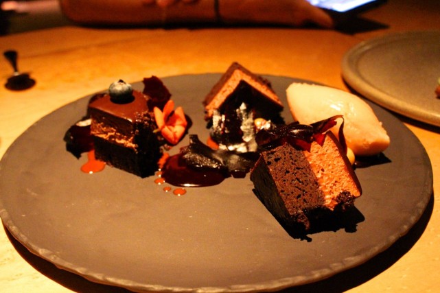 As for dessert, our favourite is the chocolate Manjari mousse with a brownie, guava & jalapeño sorbet, Quebec summer berries, and blueberry chips. The guava and jalapeño sorbet is out of this world. It’s sweet, spicy, and exotic. And the brownie and mousse are decadent and definitely chocolatey.