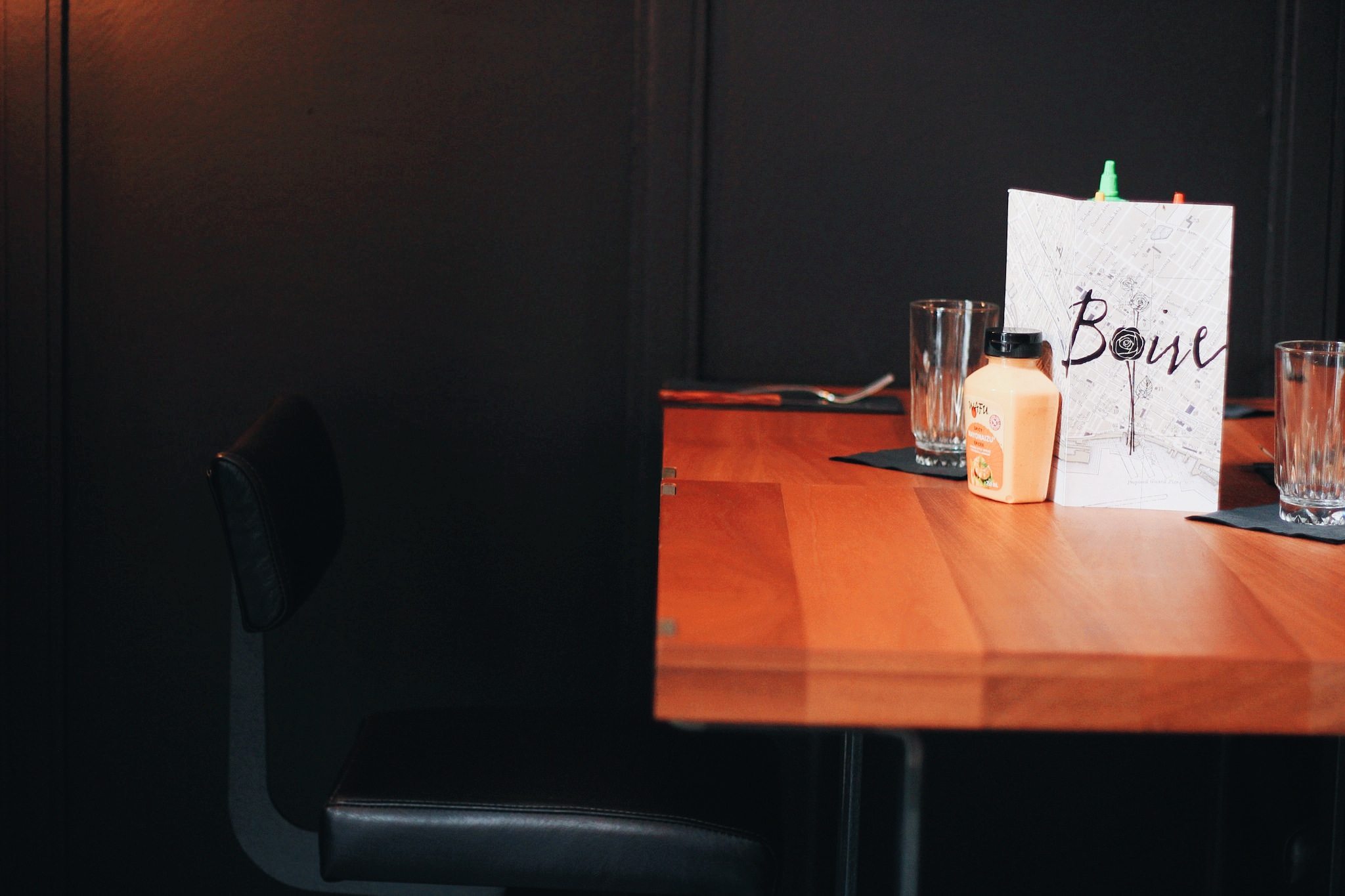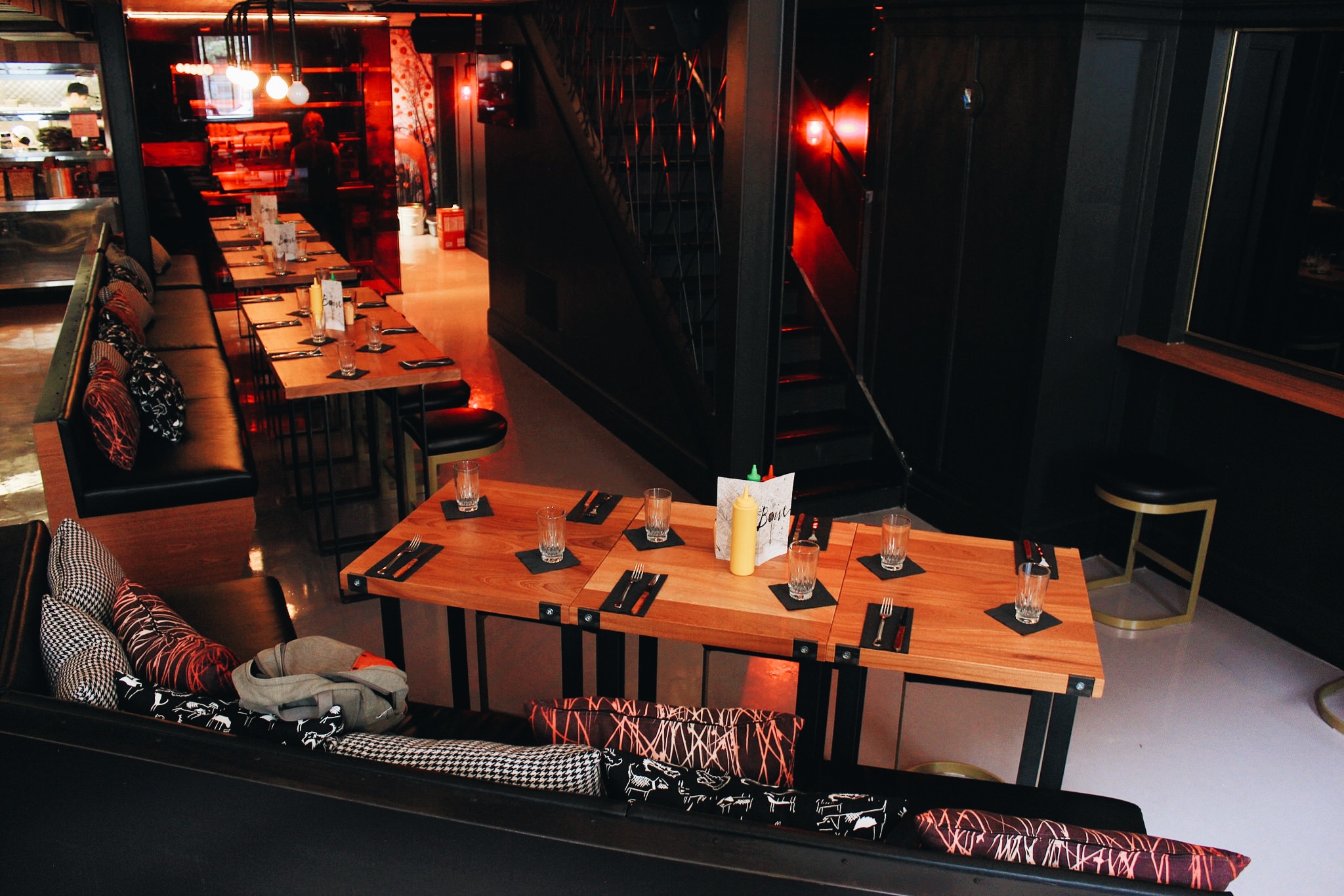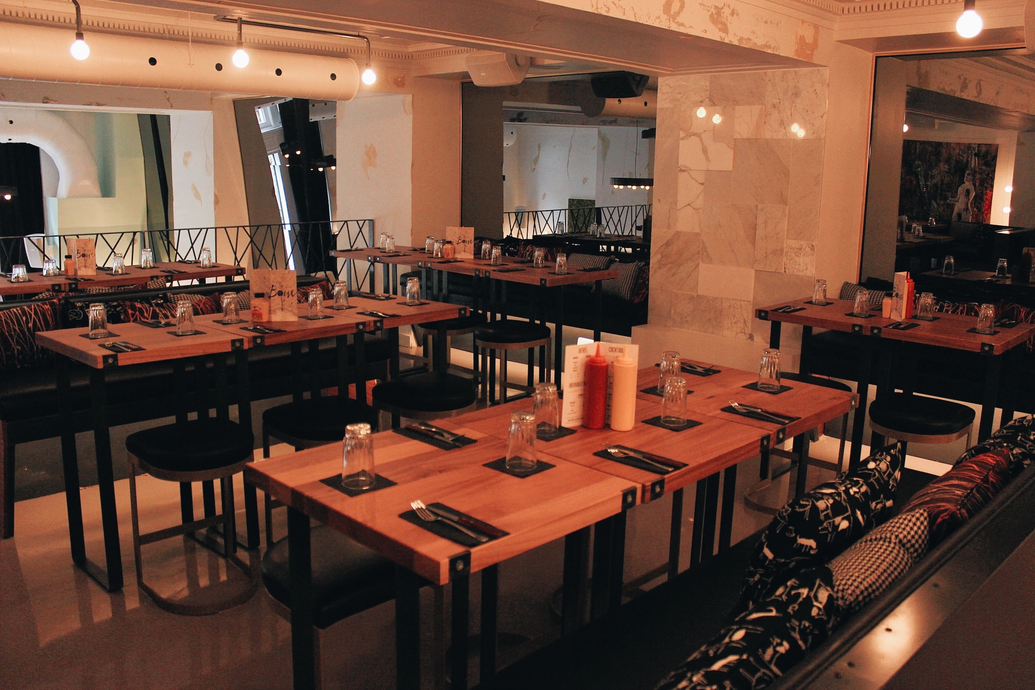Jonas: A classy, grungy, rock n’ roll feel. Benoît Séguin a.k.a DJ Bender did a great job. Everything in here is made out of real wood; the tables, the sign outside… Even the bar is one big piece of wood. We wanted to give the place that warm, cozy feeling.