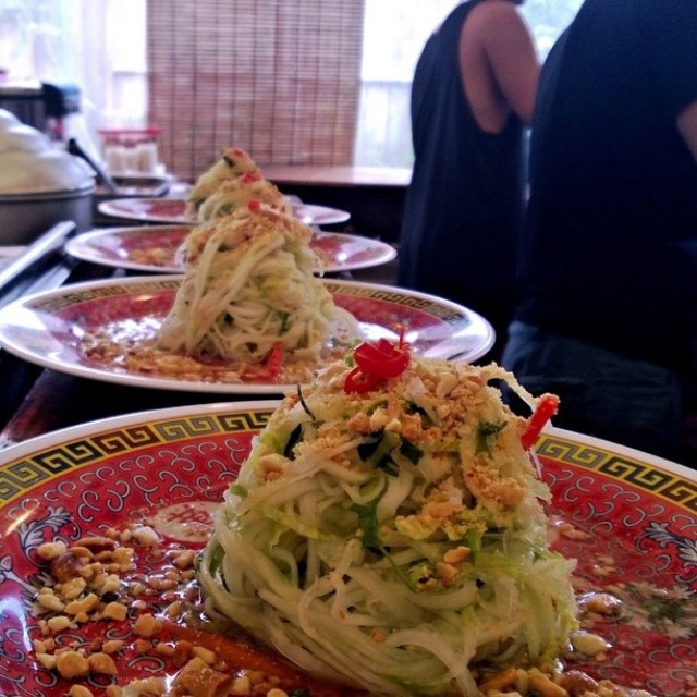 What kind of food can you expect at Satay Brothers? Dishes that are full of flavour, fresh, and extremely moreish (as in you want and need more). They’re known for their satay (of course), skewered grilled meat (pork or chicken) served with a tangy peanut sauce. And while the classic is definitely a favourite, we would encourage you to explore their delicious menu. Start off with their pillowy steam buns (pork or tofu) or spicy green papaya salad. Feeling more adventurous? How about a hot (temperature and spice wise) bowl of laksa lemak, a traditional spicy coconut based soup with noodles, shrimp, sprouts, and more. For something hearty, we tend to go for their gado-gado (a filling bowl with potatoes, beans, sprouts, cabbage, hard-boiled egg, tofu, and their dreamy peanut sauce on top).
