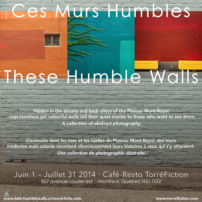 Her exhibition ”These Humble Walls” aims to capture the often overlooked beautiful details in a busy city, in this case our beloved Montreal, hidden in the streets and back alleys of the Plateau Mont-Royal, where unpretentious yet colourful walls tell their quiet stories to those who want to see them.