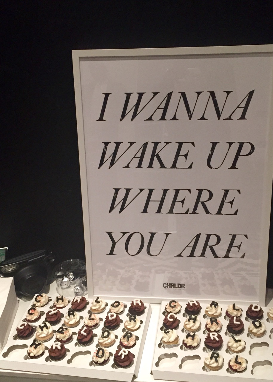 At their official pop-up shop launch party, we sipped on bubbles, snacked on CHRLDR themed micro cupcakes (almost too cute to eat), and got a glimpse at all that this whimsical brand has to offer. The pop-up shop was complete with one of kind limited pieces and their regular collection. Even the wall art contributed great energy to the room, featuring cheeky CHRLDR quotes we absolutely loved.