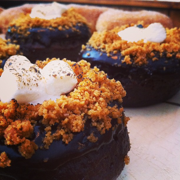 S’More – True to its name, this decadent chocolate doughnut tastes just like a s’more. It’s glazed with Hershey chocolate, covered in Graham cracker crumbs and topped with roasted marshmallows. A great way to enjoy a s’more without having to leave the city or your couch for that matter.